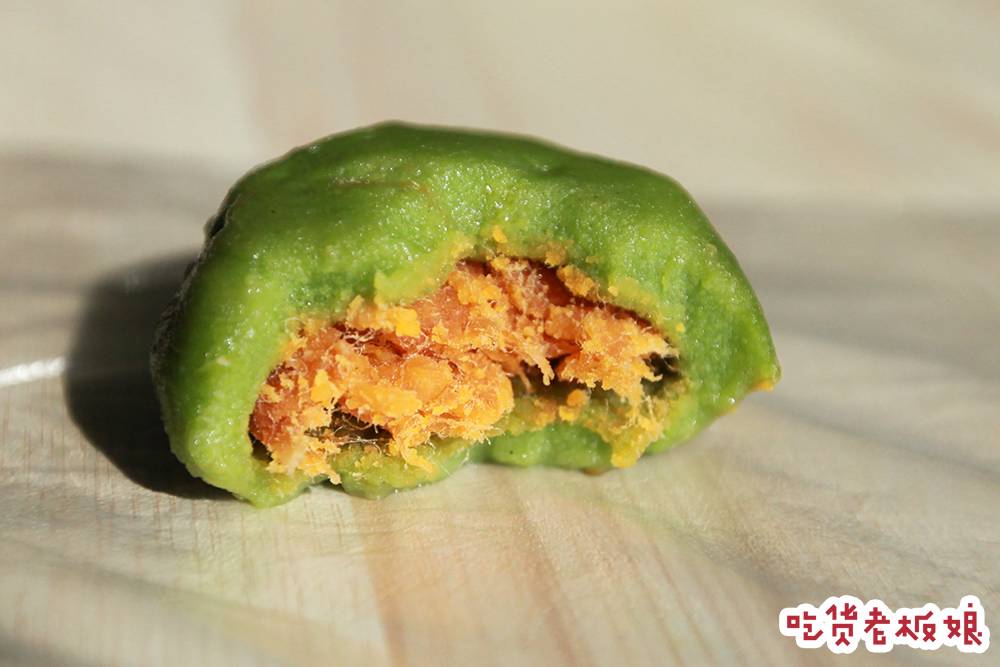 这个网红中的战斗机,真把老板娘吃哭了!倒不是接受不了咸味,毕竟我们的竹笋三丁包就是咸的呀!蛋黄长时间闷青团里面,咬开来一股蛋腥气,非常接近皮蛋的味道!嗯...皮蛋味的青团你们感受一下吧...