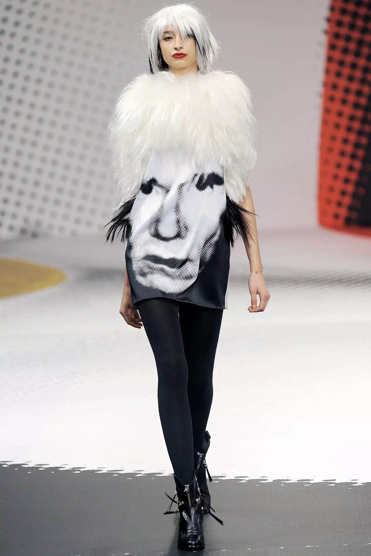 以波普艺术家Andy Warhol为灵感,模特发型也模仿Warhol标志性的白发