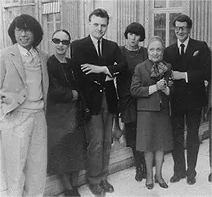 从左至右依次为:高田贤三,Anne Marie Berreta, Jean-Charles de Castelbajac, Chantal Thomas, Madame Grès, Yves Saint Laurent