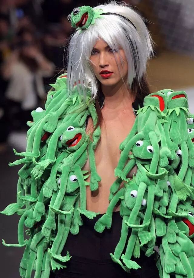 这件由卡通角色Kermit the Frog组成的衣服被Lady Gaga穿着后引起强烈反响