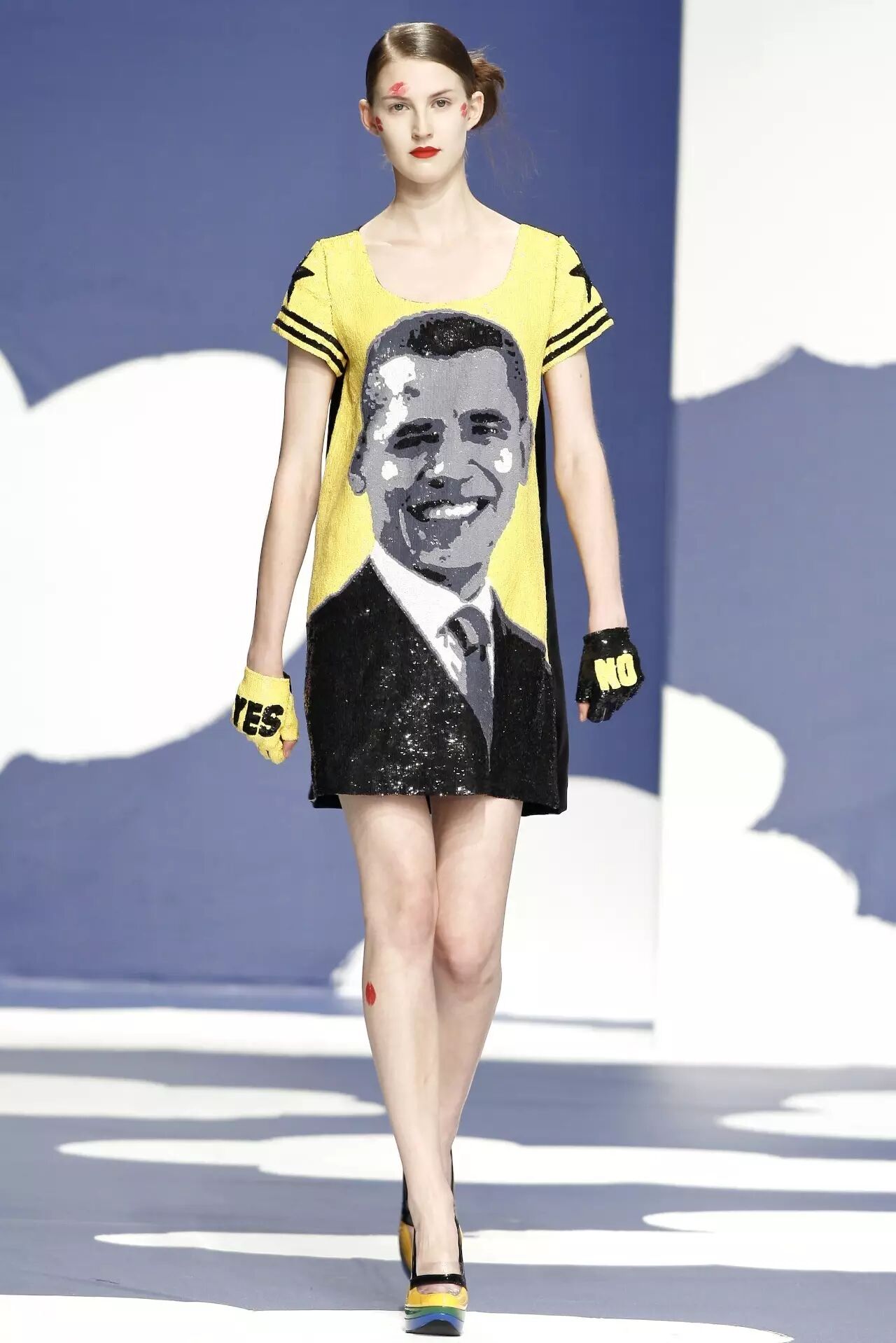 设计生涯绵长的设计师并不罕见,然而,能像Jean-Charles de Castelbajac这样在长达40余年的时间里一直保持鲜活的思想和富有趣味的设计,并不仅是大胆接受更是主动挖掘当下潮流的设计师却并不多。Jean曾在采访中坦然地表示自己对看电视和电视文化的喜爱,。设计师童年时曾看到一个装置艺术:一个神似Charlie Brown的男孩躺在地上,直勾勾的盯着电视机。这个作品名叫“Tv Watcher”,当时年仅7岁的Jean在心里暗自琢磨“我也想成为一个tv watcher”。这份对电视文化的喜爱一直延续了下来最后被融入到Jean的作品中。有些设计师的作品是歌剧式的,比如Christian Lacroix ;有些设计师,像是JeanPaul Gautier 则是如电影镜头一般的; 若要形容Jean-Charles de Castelbajac,那恐怕是发光二极管一样的作品。网络时代到来后,Jean的兴趣由电视发展到互联网。他毫无保留的吸收着周围的新鲜思想,并将他们融入到自己的创造力中。每天都保持着收集大量图片和信息的习惯也许是让这位元老设计师始终跟随时代步伐的秘诀之一。Jean从不避讳对于潮流文化的喜爱和引用。相反,这种波普艺术一般的设计成为了他一个标志性的特点。然而与其他一些设计师不同的是,Jean秉承的并不是单纯的拿来主义,而是概念转换的挪用(appropriation)。将一个具象的潮流元素从原本的语境中剥离开来进行意义上的重构和思想上的抽象化才是这位设计师最拿手的。诚然,如今运用切换概念这一手法的设计师不在少数,但此类作品很多都不免带有讽刺意味和辛辣的暗喻。这种嘲讽不仅仅存在于设计中,更弥漫于整个社会。但是在Jean的作品里鲜有这样尖锐的锋芒。设计师将讽刺和暗喻与智慧和幽默进行转换,而后者通常是非常有用的表达道具。他曾在采访中说道“那是法国精神的根源;用智慧转移空洞浮华。”