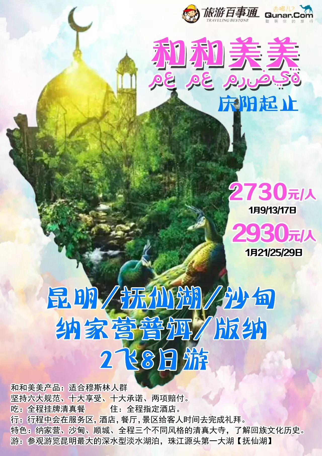 早餐后参观游览云南最大的清真寺【沙甸清真寺】(不低于120分钟)。,云南沙甸清真寺是全省最大的清真寺,可容纳4000多人礼拜。清末民初沙甸一些学者作为我国首批赴埃及的留学生,到开罗爱资哈尔大学深造。云南沙甸到麦加圣地朝圣者也多达百人。因此,沙甸有“滇南小麦加”之称。后乘车返回玉溪,参观美丽的【纳家营清真寺】(参观时间60分钟)之后返回昆明,【顺城清真寺】(参观时间60分钟),入住酒店。