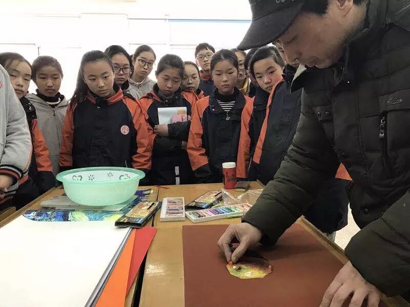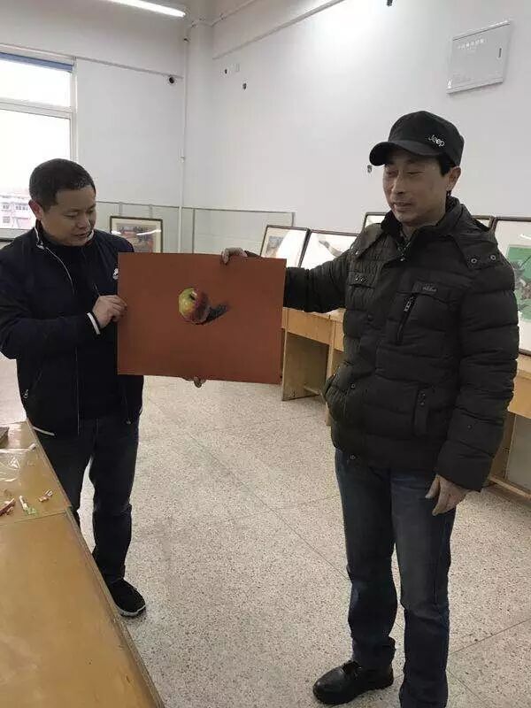 时下流行的砂纸画,其发明人,就是丽华中学的美术老师谢伟。木工手中普通而廉价的砂纸,用油画棒在其上作画,能产生出更有立体感的油画效果。说起发明砂纸画的动机,谢老师的回答异常朴实,“就是为了孩子们学习方便。”