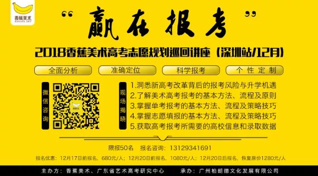 单考怎么报才能提高获证量?志愿怎么填才能减低落榜风险?“赢在报考”2018香蕉美术高考志愿规划巡回讲座将于12月23日在深圳举办。