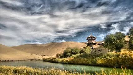 两千年前,大汉的铁蹄踏过这里,一千年前,大唐的雄风吹过这里,这里瞬间热闹起来,来来往往的人群,一队又一队的商队,骆驼的风铃在风中清脆作响。