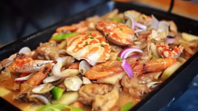 海鲜自助餐,人气爆棚,晚去就得等位,有虾、蟹、长脚蟹、生蚝等各种海鲜,当然还有一些日式料理、各种熟食、甜品、有飲品......都有分区的哦,吃到你扶墙出去。