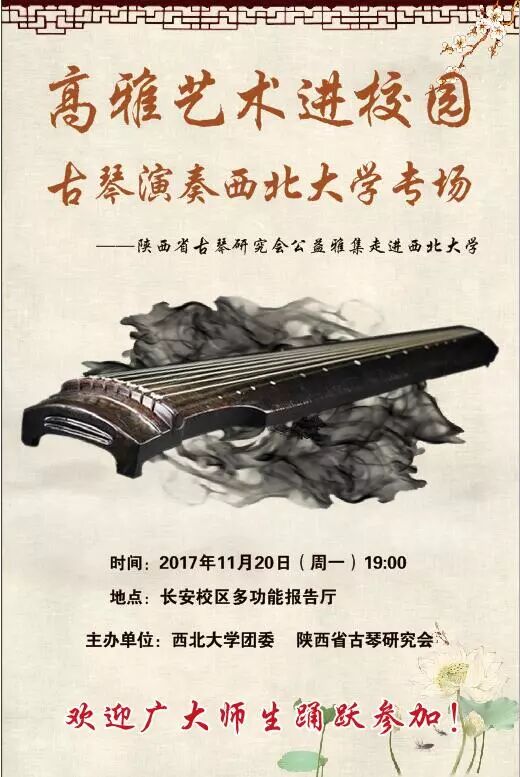 由陕西省内外从事古琴工作的人士和古琴爱好者发起并自愿组成的非营利性社会组织,以延续千年国乐,传递华夏声音,弘扬中华文化,促进文化交流为宗旨。协会也面向社会开展古琴艺术的普及讲学、业余辅导、人才培训等工作。