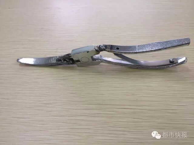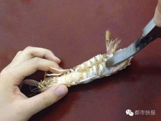 她现场演示了这把“神器”,类似一把钳子,但前端是两块略有弧度的扁片。一只皮皮虾,背朝下、腹部朝上放好,薄薄的钳嘴从尾巴轻松穿入,伸进一截后,稍一用力压住钳子腿,“啪”地一声,壳就分开了,虾肉轻松取出。