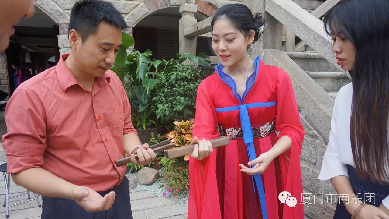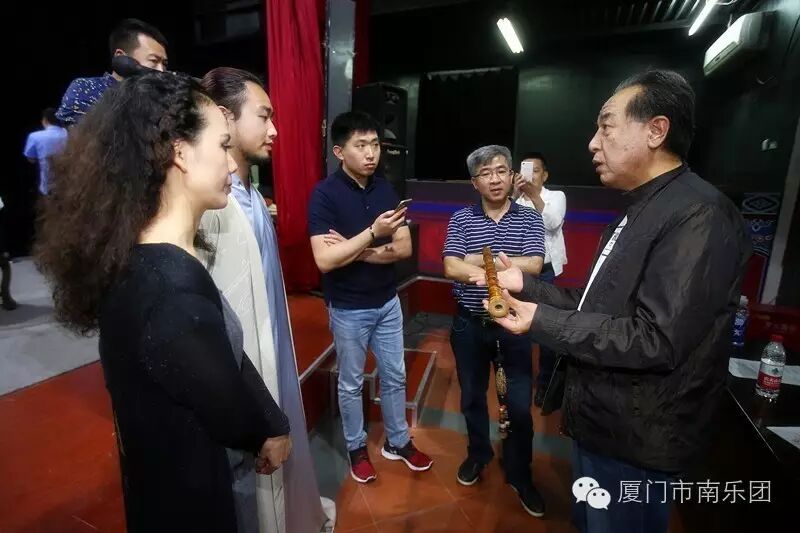 赵石军老师(右一)向我团洞箫乐手了解南音洞箫
