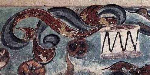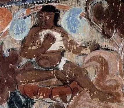 五弦又称五弦直项琵琶。起源于印度,经由丝绸之路的天山北麓传入中国。乐器形态与演奏方式都与四弦琵琶较为接近。曾一度盛行于唐代,入宋以后逐渐走向消亡,取而代之的是四弦琵琶。遗憾的是这件乐器在我国并没有得到传承。现今世上唯一一件唐代五弦直项琵琶“螺钿紫檀五弦琵琶”留存在日本正仓院。作为镇馆之宝,每次展示都会吸引世界各地文物爱好者和历史研究者前去观展。图为北周第428窟中心柱。