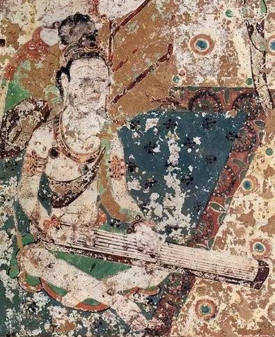 飞天抱着的并非是一块搓衣板哦。琴,在我国汉晋时期就确立了七弦十三徽的形制,并传承至今。在《诗经•关雎》中也有“窈窕淑女,琴瑟友之”这样的诗句,古琴的孤独性从诞生之初就已被注定。图为北周第299窟窟顶南坡。