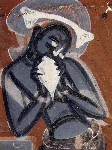 埙,早在周代“八音”分类中就被纳入“土”类乐器之列。这件乐器在敦煌仅此一例。图中,乐伎双手持埙,音孔数量不详。