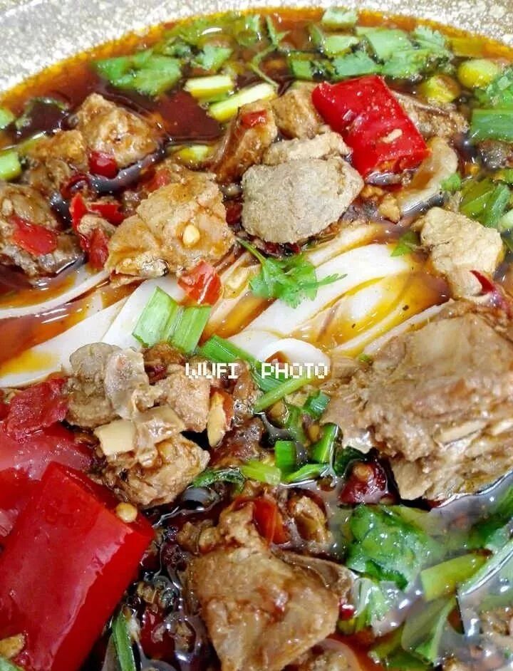 水辣椒是用糊辣椒面混合了盐、味精等调料,加上剁碎的折耳根(重点是折耳根,川黔两地人民对折耳根的执念,那是可以另起一篇,写上几千字了)和葱花,再加上甜面酱制成。·干辣椒则是把辣椒打成最细的粉末状,加入盐、味精、芝麻等调料。