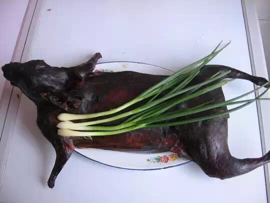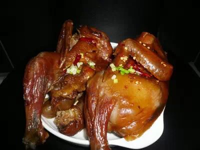 精盐炒去水分,均匀擦抹在鹅体上,肉厚处多擦,并用竹扦穿几个眼。擦抹后装入木盆中加盖,腌2天。取出在太阳下挂晒1到2天,熏时用竹棍撑开,挂在火塘上面任其烟熏火烤。