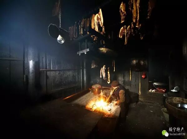 绥宁人喜欢熏炕腊味,每年冬季,绥宁农家就开始杀猪、磨豆腐,将各种腊味食材切成大块,用盐腌透,将盐水滤尽,然后上架熏炕,熏炕过程中多用明火,用的柴火主要是柑桔树枝叶,这样熏炕出的腊味才会更香。
