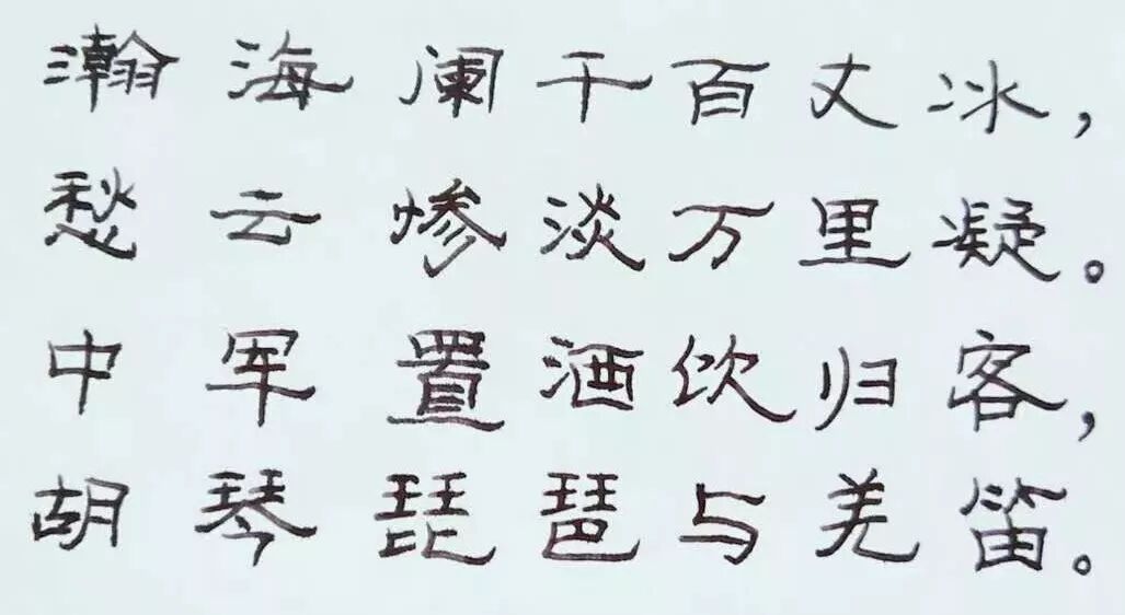 “瀚海阑干百丈冰,愁云惨淡万里凝”,用浪漫夸张的手法,描绘雪中天地的整体形象,反衬下文的欢乐场面,体现将士们歌舞的积极意义。"中军置酒饮归客,胡琴琵琶与羌笛",笔墨不多,却表现了送别的热烈与隆重。在主帅的中军摆开筵席,倾其所有地搬来各种乐器,且歌且舞,开怀畅饮,这宴会一直持续到暮色来临。