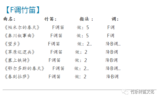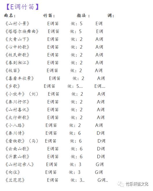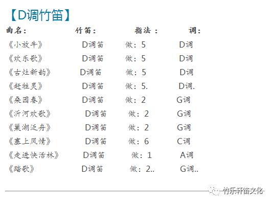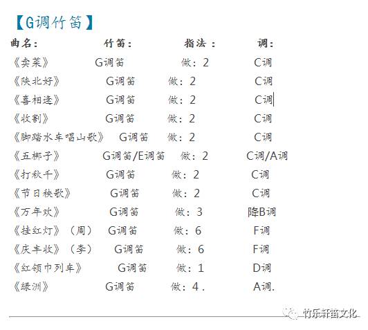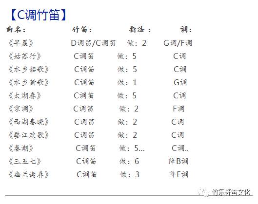 【竹笛教学常用曲目表】
