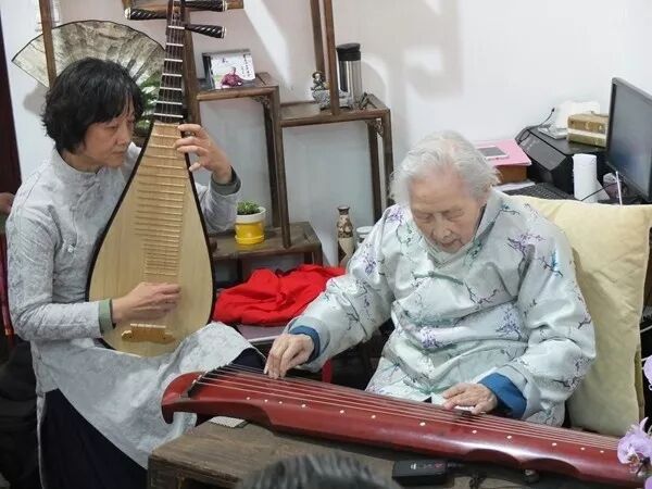 (鲍老师和广陵派一代宗师张子谦先生外孙女古琴家戴晓莲女士交流)