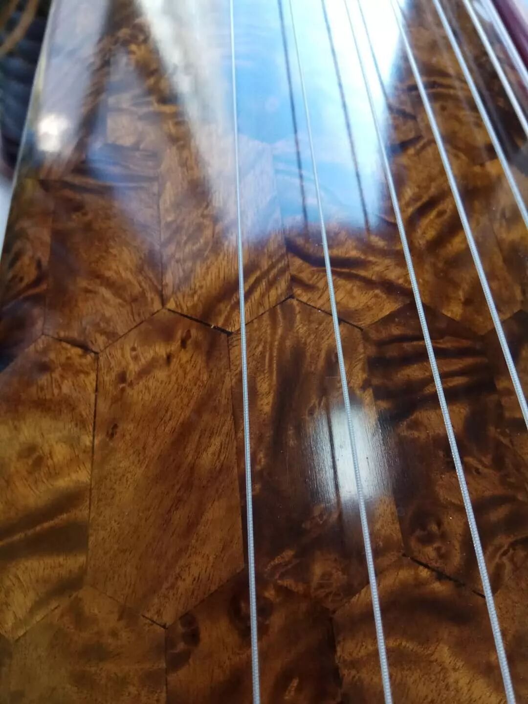 (鲍师父联合创立的“不闻坊”品牌古琴工作室历时数年斫制的稀世珍宝级古琴——金丝楠木百衲古琴“虎啸龙吟”)