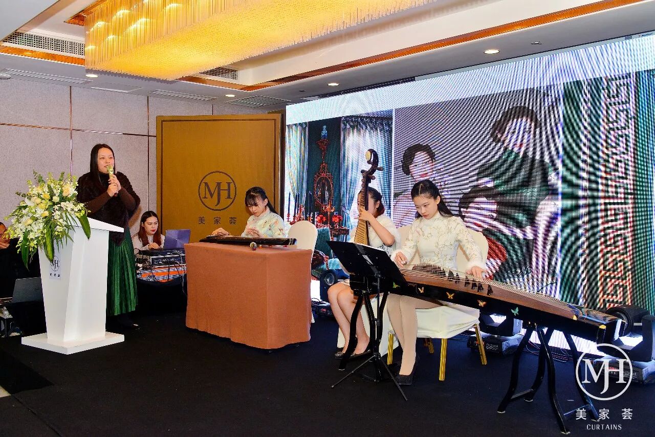 整场活动中,最具亮点和创意的当属美家荟产品研发展示环节。伴随着研发设计师张之玥女士的畅谈,配合古琴琵琶、模特走秀的倾情演绎,所有嘉宾沉浸在美人、美景和产品中,领略美家荟的面料品质、匠心工艺与灵感设计。