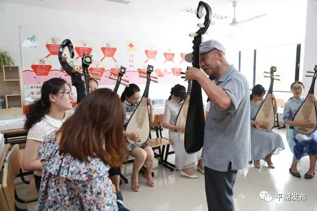8月8日,朱大祯带着徒弟黎庆慧与廊下琵琶爱好者相约在廊下镇社区文化活动中心。朱大祯是国家级非物质文化遗产平湖派琵琶的传承人。从7月开始,每个星期,他都要抽出一天时间,从平湖赶到上海市金山区廊下镇赴约。那里有一群琵琶爱好者正等着他传授平湖派琵琶的弹奏技巧。