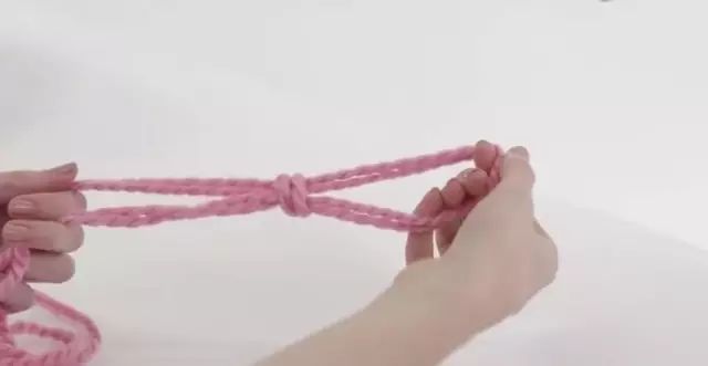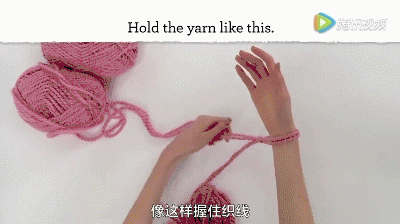 打一个活结,将毛线圈套在手腕上,然后用图示方法抓住毛线