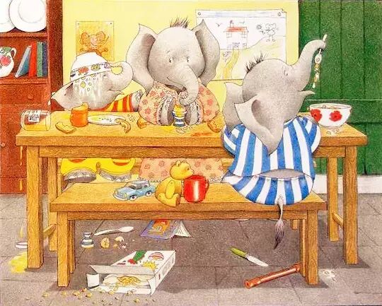 这本图书说是给孩子看的,不如说是给爸爸妈妈看的。感觉这本书是专门为妈妈们写的一本书,大象妈妈对孩子的爱与无奈是每个妈妈都会面临的问题。虽然爱孩子,但有时候真的是很想暂时找个地方安静一下,可是哪怕只是短短的五分钟也显得那么的奢侈。