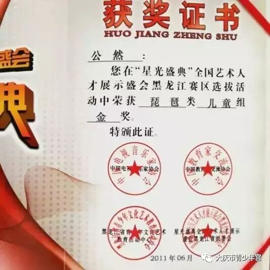 2011年在“星光盛典” 全国艺术人才省会黑龙江赛区获得金奖;