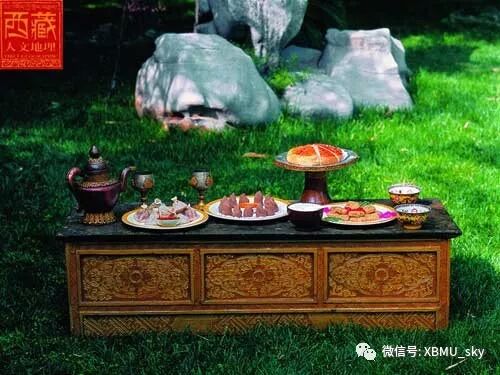 藏族在迎接客人时除用手蘸酒弹三下外,还要在五谷斗里抓一点青稞,向空中抛撒三次。酒席上,主人端起酒杯先饮一口,然后一饮而尽,主人饮完头杯酒后,大家才能自由饮用。饮茶时,客人必须等主人把茶捧到面前才能伸手接过饮用,否则认为失礼。吃饭时讲究食不满口,嚼不出声,喝不作响,拣食不越盘。用羊肉待客,以羊脊骨下部带尾巴的一块肉为贵,要敬给最尊敬的客人。制作时还要在尾巴肉上留一绺白毛,表示吉祥。