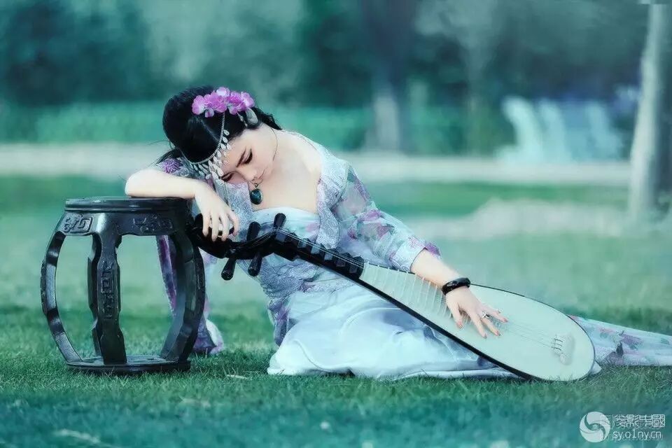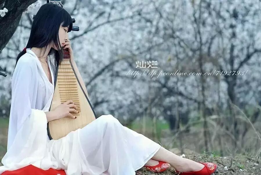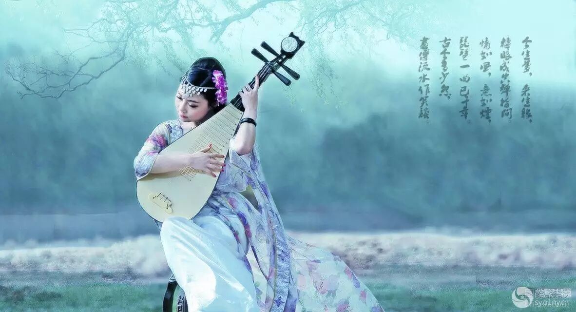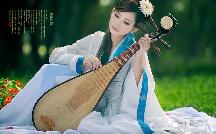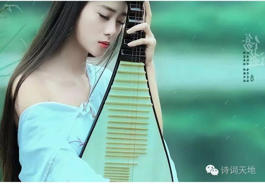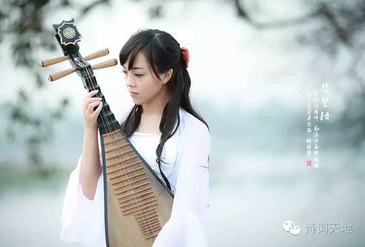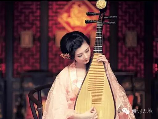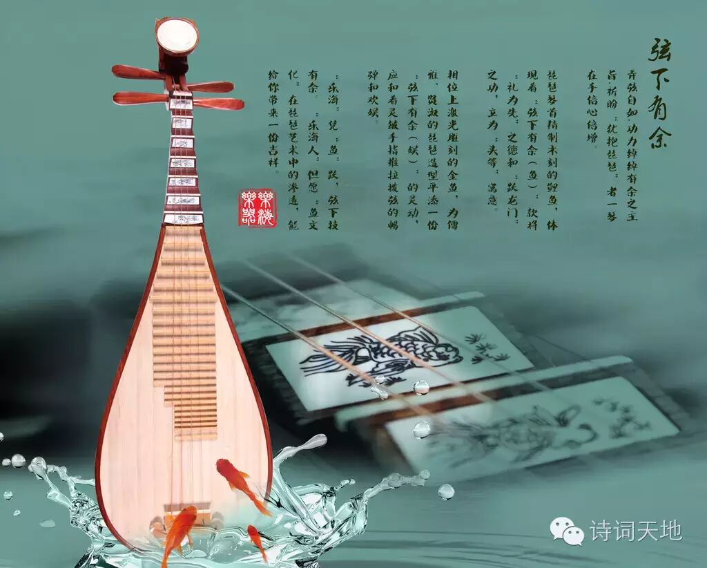 转轴拨弦三两声,未成曲调先有情。在中国文学史上,留下了大量赋咏琵琶及其表演的诗篇,流传至今。唐代白居易的名篇《琵琶行》最具代表性,极为生动而传神,成为千古传诵的诗作名篇。如“千呼万唤始出来,犹抱琵琶半遮面”, “别有忧愁暗恨生,此时无声胜有声。银瓶乍破水浆迸,铁骑突出刀枪鸣,曲终手拨当心划,四弦一声如裂帛。”非常形象地对琵琶演奏及其音响效果进行了刻画。