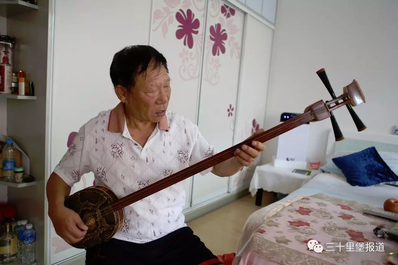 李树仁的姥姥家曾经就在三十里堡,2008年退休回来一段时间,李树仁喜欢上这片土地,“这里的文化氛围非常浓郁,更重要的从街道到村里的领导都特别支持,对我们搞得文艺团体也很关怀,关注文化团体的需要,提供大舞台让我们展示,一想到这些心里就感觉很温暖。”李树仁在这里吸收到了文艺的养分,同时也加入到文艺的队伍中继续传递着能量。准备回到三十里堡那一年,居住的房子还在装修,李树仁首先把7、8件乐器先搬回了三十里堡,摆在家里显眼的位置,让它们在自己视线范围内才能安心。安灯的工作人员看到家里大大小小的乐器不禁惊叹,马上给李树仁介绍到三十里堡的民乐队里一起活动。“不管做什么职业的人,大家都有相似的音乐爱好,你说这文艺气氛得多浓厚?!”李树仁在广场上打过架子鼓,在京剧票友社里弹过三弦,在家门口吹过萨克斯,因为器乐认识了很多志同道合的伙伴一起组成乐队。