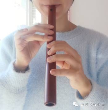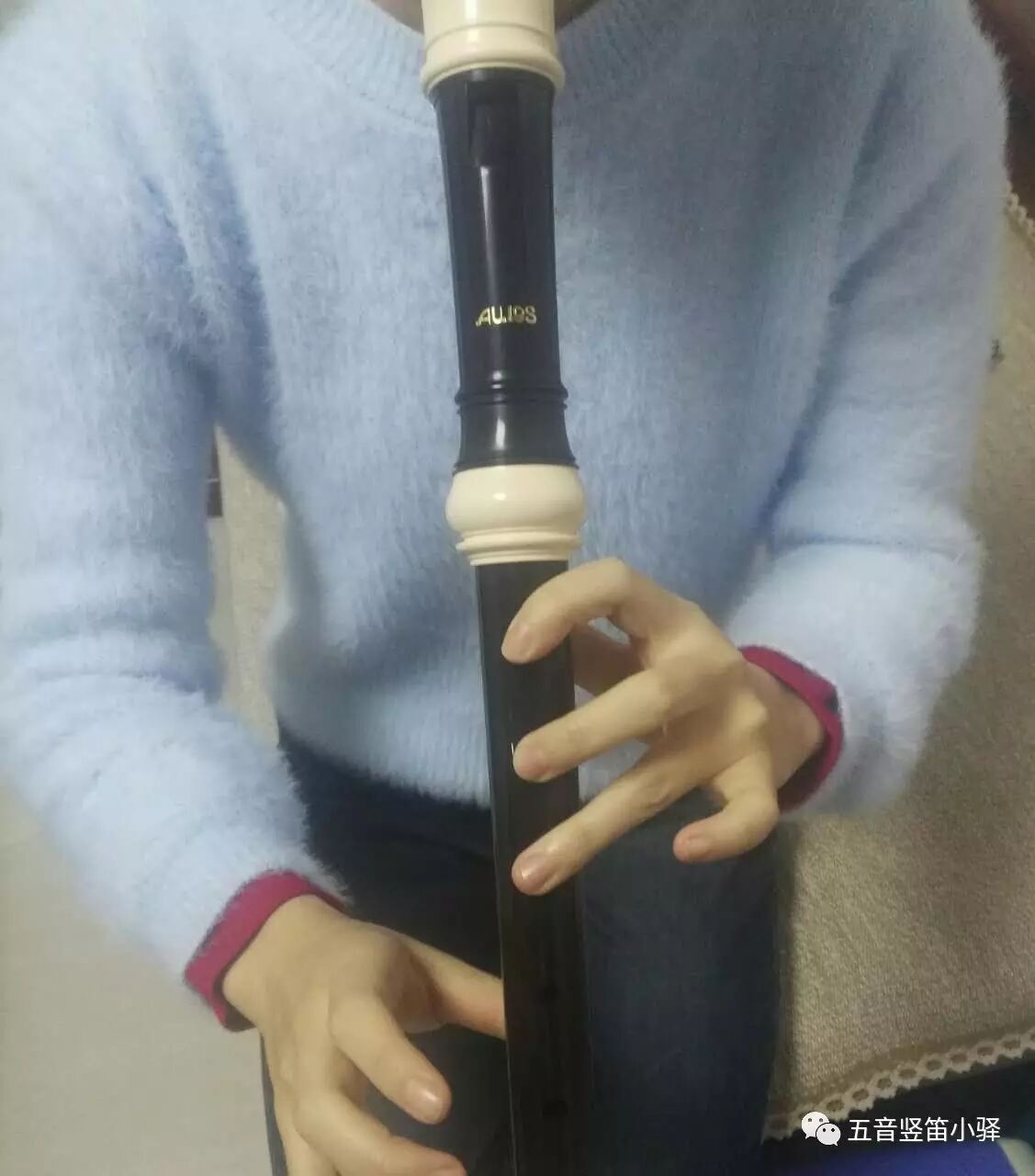 大家请看上面两张我吹笛子的照片,第一张是中音笛,能够看到我上方的左手的无名指在努力伸展去按孔,伸得不能再直了。而第二张五音竖笛我在按孔的时候,手指就比较平顺舒适。