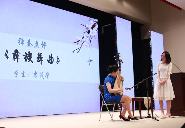 在 “师生互动”环节,历史学系李茂华同学独奏一支《彝族舞曲》,“重要的是呼吸和情感”。赵聪充分肯定了同学的演奏,并微笑着接过琵琶,现场点拨和示范,让在场的观众们大呼过瘾。