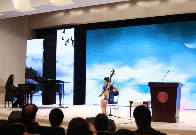 4月19日晚,“指上天下:聆听中国的声音”大型文化艺术活动在光华楼吴文政报告厅举行。中央民族乐团首席琵琶演奏家、国家一级演员赵聪女士与钢琴家、中央音乐学院副教授刘兴辰先生共同上演一曲琵琶与钢琴的“爱恋”,哲学学院张汝伦教授则通过主题演讲深度演绎诗书礼乐对于中国精神的构建。国学为底,琵琶为韵,一场音乐与哲学的跨界“讲”“演”与对话,为师生们带来一场打破“传统”的传统文化视听盛宴。常务副校长包信和院士出席活动。复旦学院常务副院长、教务处处长徐雷教授致开幕辞并代表复旦学院向赵聪授予“复旦大学复旦学院特聘导师”的聘书。