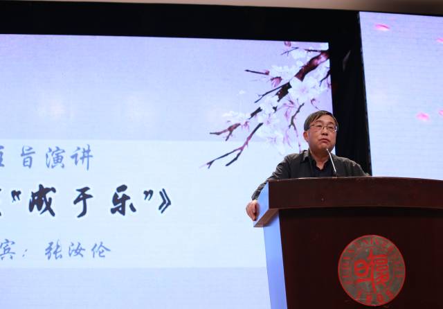 赵聪的精彩演出后,主讲嘉宾张汝伦从中国哲学视角出发,以《谈谈“成于乐”》为题发表主旨演讲,阐发了传统文化中美育对于青年学子“修身养德”的重要意义,以及当代中国的文化命运。张汝伦常年开设《论语》导读、德国古典哲学等课程,其热情与犀利吸引了众多学子,曾被评为2010—2011学年 “复旦大学研究生心目中的好导师”,深受同学们的尊敬与喜爱。