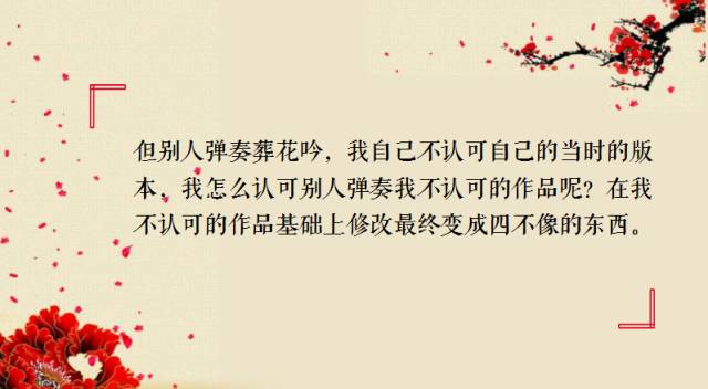 但别人弹奏的《葬花吟》,我自己不认可自己的当时的版本,我怎么认可别人弹奏我不认可的作品呢?在我不认可的作品基础上修改最终变成四不像的东西。