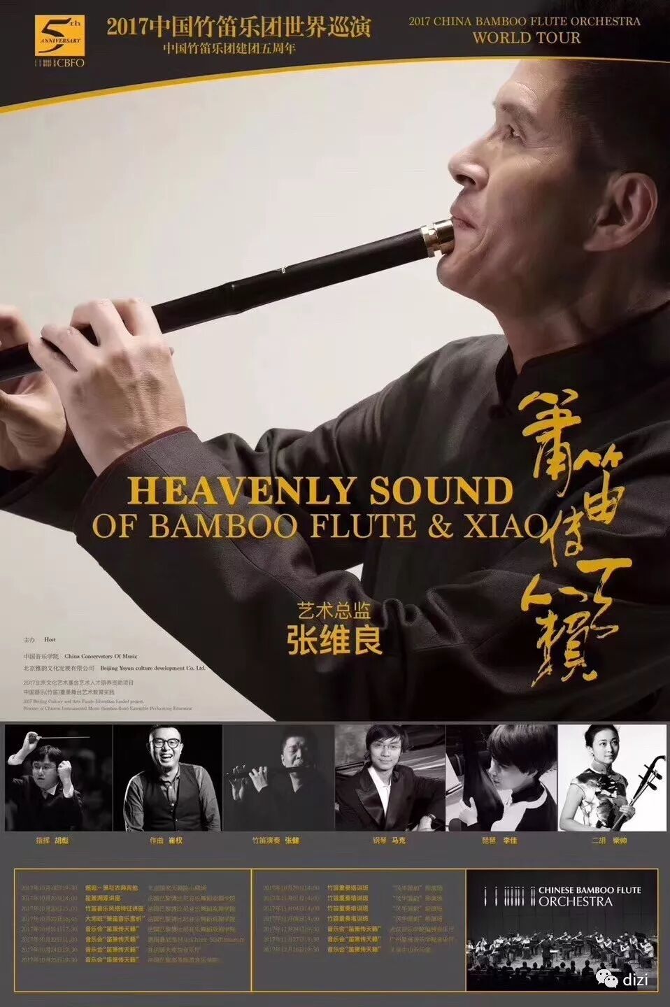 为贺“中国竹笛乐团”成立五周年,被誉为圣手箫王、中国笛箫第一人的笛箫演奏大师张维良教授率中国竹笛乐团于2017年10月18日在中国国家大剧院拉开“笛箫传天籁”主题音乐会全球巡演的帷幕。