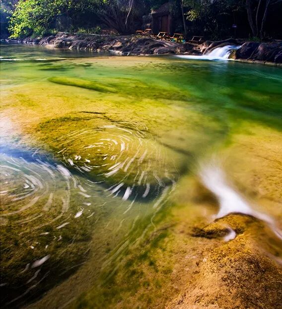 溪流河道瀑布周围生长着许多芦苇丛,在你观赏美景的同时,还能看到白色花絮迎风起舞,看着花絮飞满天空,这种浪漫的氛围是美人谷给你最极致的体验。