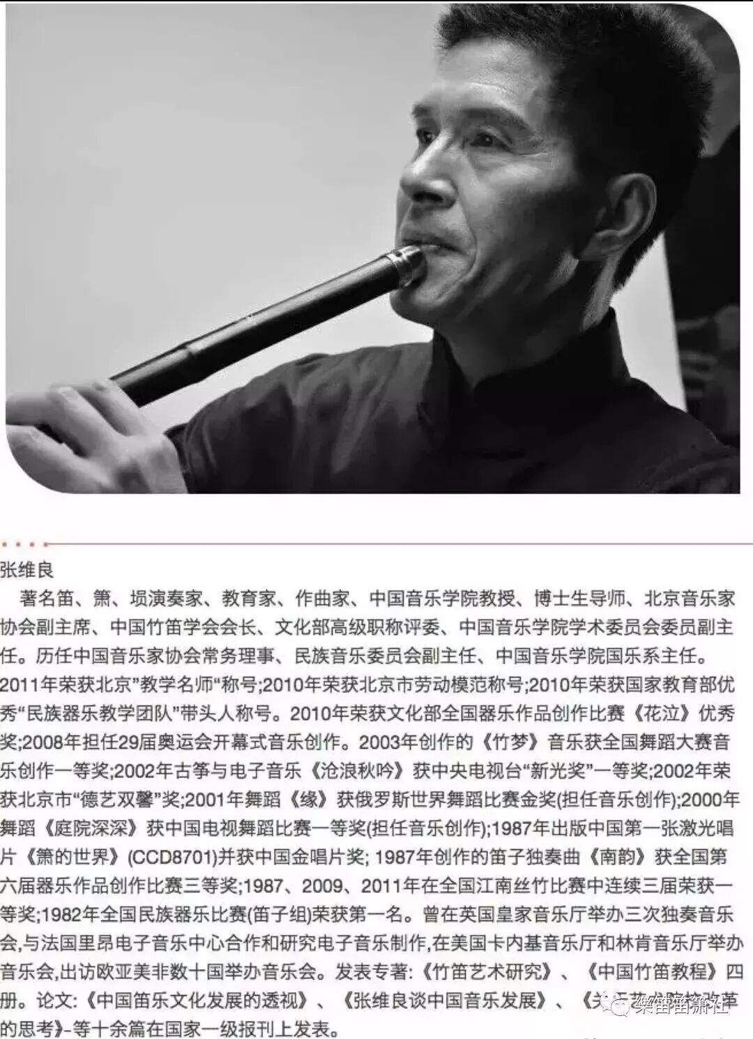本次音乐会,张维良先生还特别邀请了古筝演奏家邱霁,二胡演奏家柴帅,琵琶演奏家李佳,武汉音乐学院打击乐教师王韵铭。