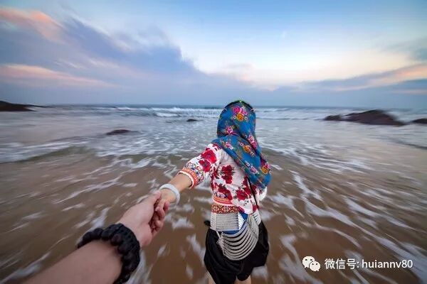 你把头巾一角轻轻咬在嘴里这样优美地站在海天之间