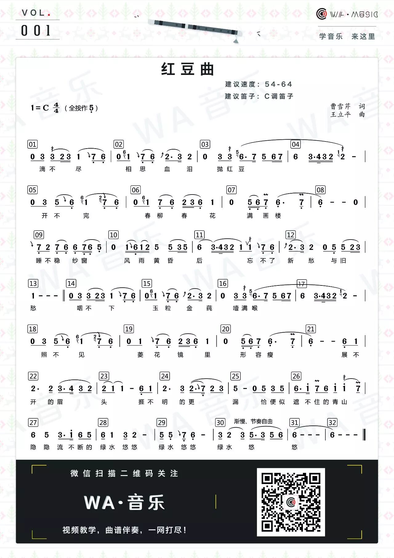 点击下方图片保存原图可直接打印《红豆曲》简谱(A4纸张);想要获取WA音乐原创钢琴伴奏源文件,来我们的QQ玩家群下载吧!