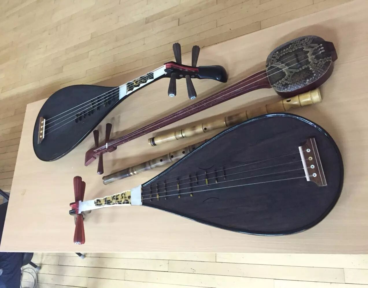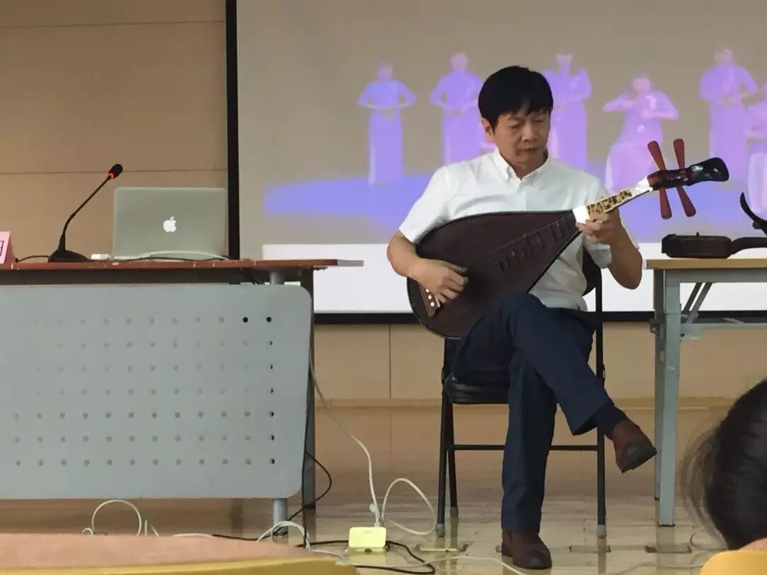 在上课期间,我们所有人之前对“工乂谱”都是完全不了解,完全不认识的,老师特别有耐心的带着我们一起一个音一个音的认,一个音一个音的唱,而且曹老师还带来了南音演奏中的主要乐器,不仅亲自做示范,还让我们视奏,完全零距离的接触这些漂亮的特色乐器,特别感谢曹老师还邀请了北师大南音社的老师和同学们,特地为我们做了精彩的演出展示。