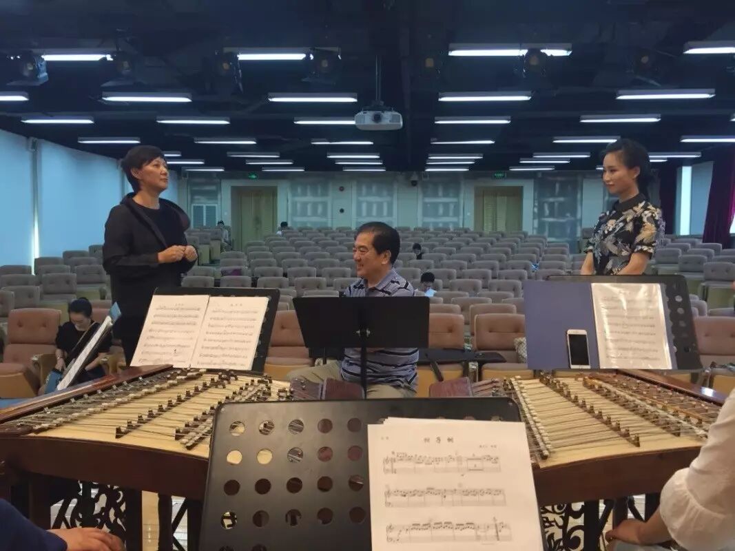 最后三天大家真是倍感压力啊!生怕自己影响了演出。就说我们的小组吧,我们音乐会中将要演奏的曲目是五重奏《欢乐的夜晚》,因此,我们欢乐五人组由此命名。在演出前的第三天,我们拿到谱子,第二天被告知音乐会时我们是要脱谱演奏。瞬间压力感爆棚啊!我们开始见缝插针,无论什么时候走过酒店房间,都能听到各种琴声,一不小心还影响到其他房客,结果被投诉。不过,我们“欢乐五人组”的名字不是白起的,我们其中扬琴演奏者桂好好,柳琴演奏者魏青,她俩之前有排练过这首曲目,对曲子比较熟悉,一直耐心的给我们当陪练,一遍一遍,一句一句的带着我们练。音乐会开始前一晚,是曲目审查。王老师要把音乐会的所有曲目过一遍,我们内心是又期待又忐忑啊!当我们奏完一遍时,王老师说了一句话:“你们这个组合,是我目前见到的演奏这首曲目,演奏的最好的组合之一,然而你们只练了三、四天,真是不错的”听到王老师这句话,就像一剂强心针,无疑是对我们五人最好的鼓励。大家的脸上都是无比灿烂的微笑。