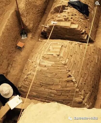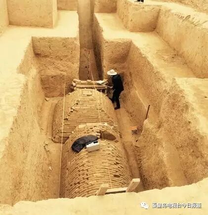 3月10日,郑州一个待建的工地挖掘出金字塔状古墓。文物部门介绍说,现场挖出一个东西方向的墓室,长约30米、南北宽约8米,墓室门朝东,从一个窄窄的墓道向下直达已经开挖出来的墓室内,先是一个砖结构的金字塔状结构的小墓室,与金字塔状墓室西边连着的就是一个拱顶长形的砖结构主墓室,长约4米。此处在黄河南岸,北边不远处就是楚汉古战场鸿沟,当年为荥泽县所治,东边为将军岭,东南距荥泽古城两公里左右,距离汉代冶铁遗址也只有两公里左右。这里还是三国时的古战场,隋朝在此置广武县,现在广武镇政府所在地距此处两公里左右。在主墓室顶偏东南方向,拱形砖出现一个直径约80厘米的塌陷。一名郭姓考古人员指着此处说:“这是一个盗洞。盗墓人当年从顶上打洞后,把墓顶的拱形砖打开进入墓室内盗取物品。目前我们还没有打开墓室,正进行打开墓室的准备工作,具体是一个什么年代的墓,要看看墓内的东西再说。”