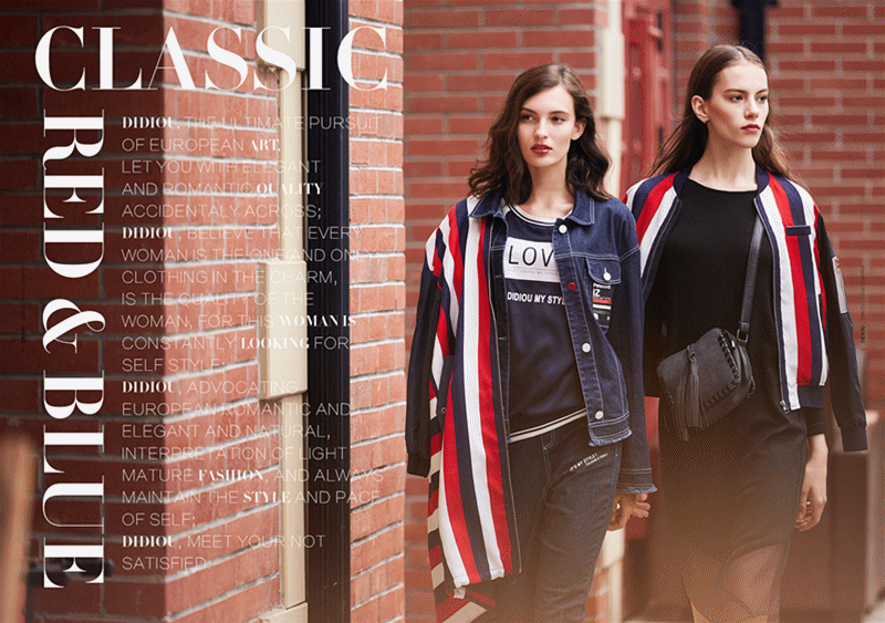 DIDIOU品牌以轻潮、轻优、轻奢以及设计师系列贯穿整个品牌,迪笛欧以时尚潮流原创元素与舒适面料完美结合,我们前卫,但是不另类,我们简介,但也很精致,我们注重设计敢,注重搭配,一衣多穿为我们品牌特色。