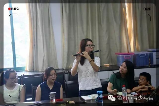 经过一天的的教学培训,参加培训的教师们进步神速,在指法和吹奏技巧上都有很大的精进。7月13日上午,衢州市委常委、宣传部长诸葛慧艳在指导市青少年宫哲学社会科学普及教育工作时,走进竹笛培训班聆听了一会儿培训课程,听完教师们的吹奏,诸葛部长开心地说“老师们吹得好,指导老师教得好!”