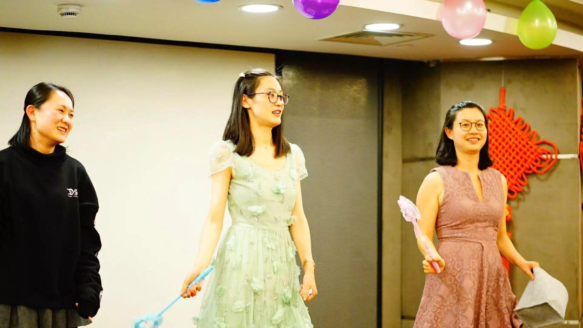 三位老师城会玩儿,从左至右分别是童心未泯罗老师,纯真小清新薛老师,还有24岁的年龄,40岁心态的于老师。