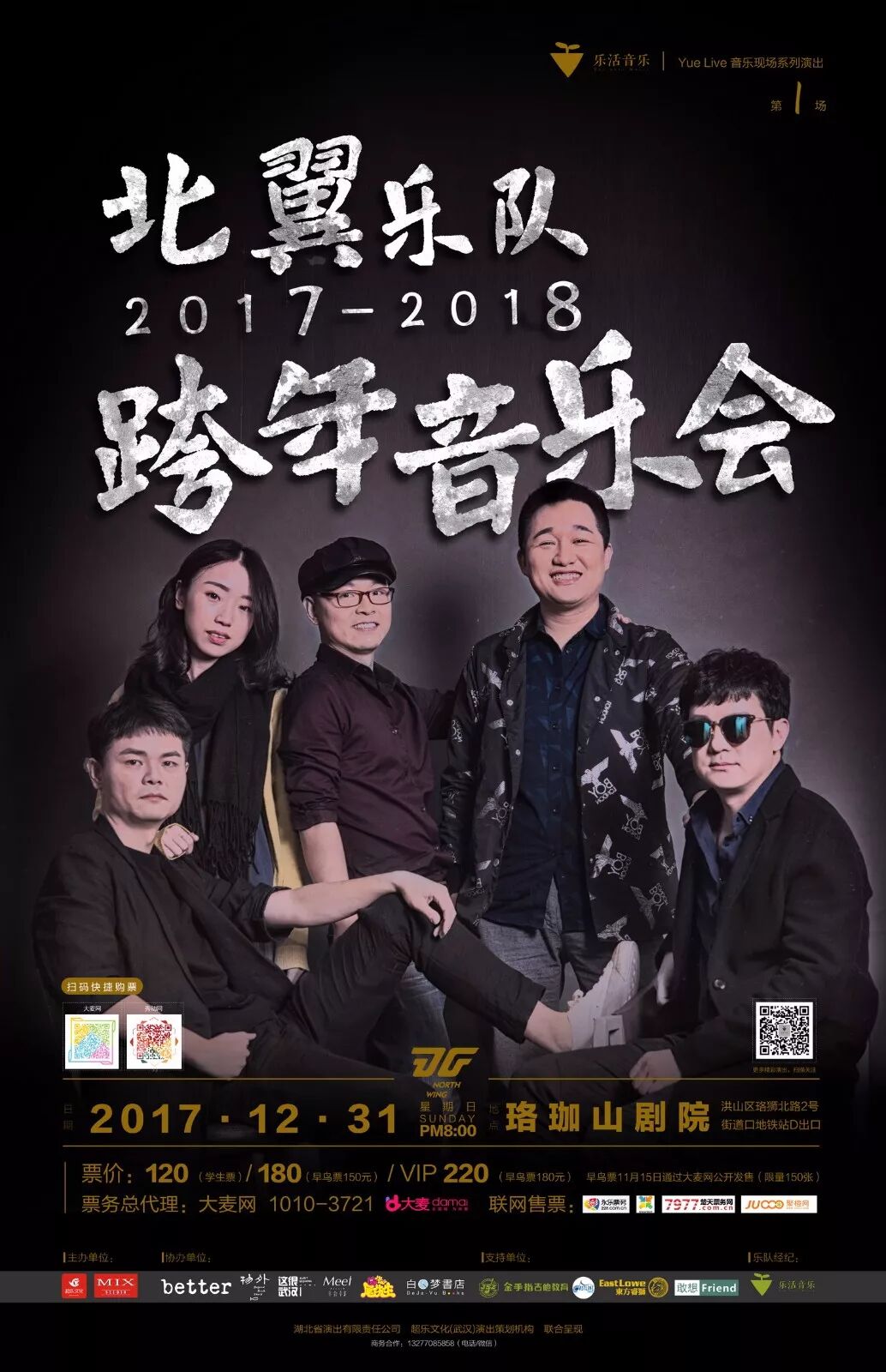2017年12月31日北翼乐队2017-2018跨年音乐会将在武汉珞珈山剧院举行,届时,他们会将所有创作的歌曲重新进行编配一一呈现给大家,还会有两位大咖嘉宾登场。