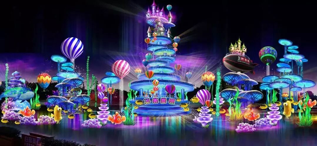 超大型梦幻灯组海市蜃楼灯海漫天,气势恢宏的人间仙境引人入胜,藏宝海湾映照黄金满谷,美人鱼的歌声令人流连忘返,二十余组水上花灯唱响海洋旋律,游人仿佛置身梦幻水世界。