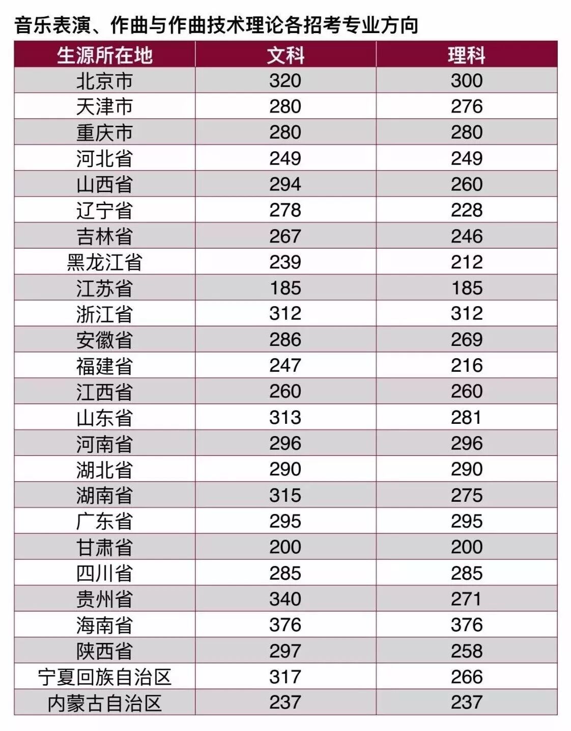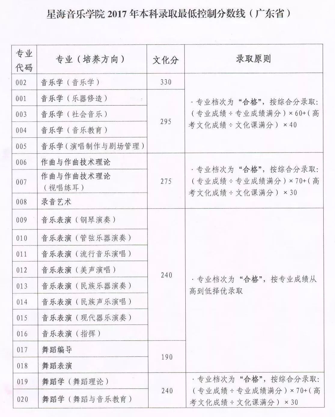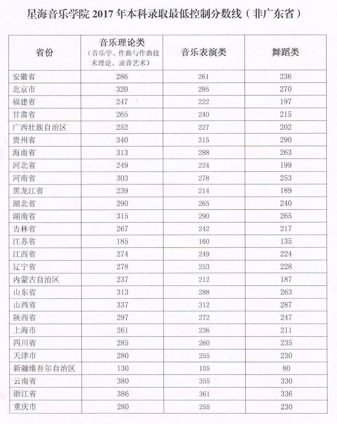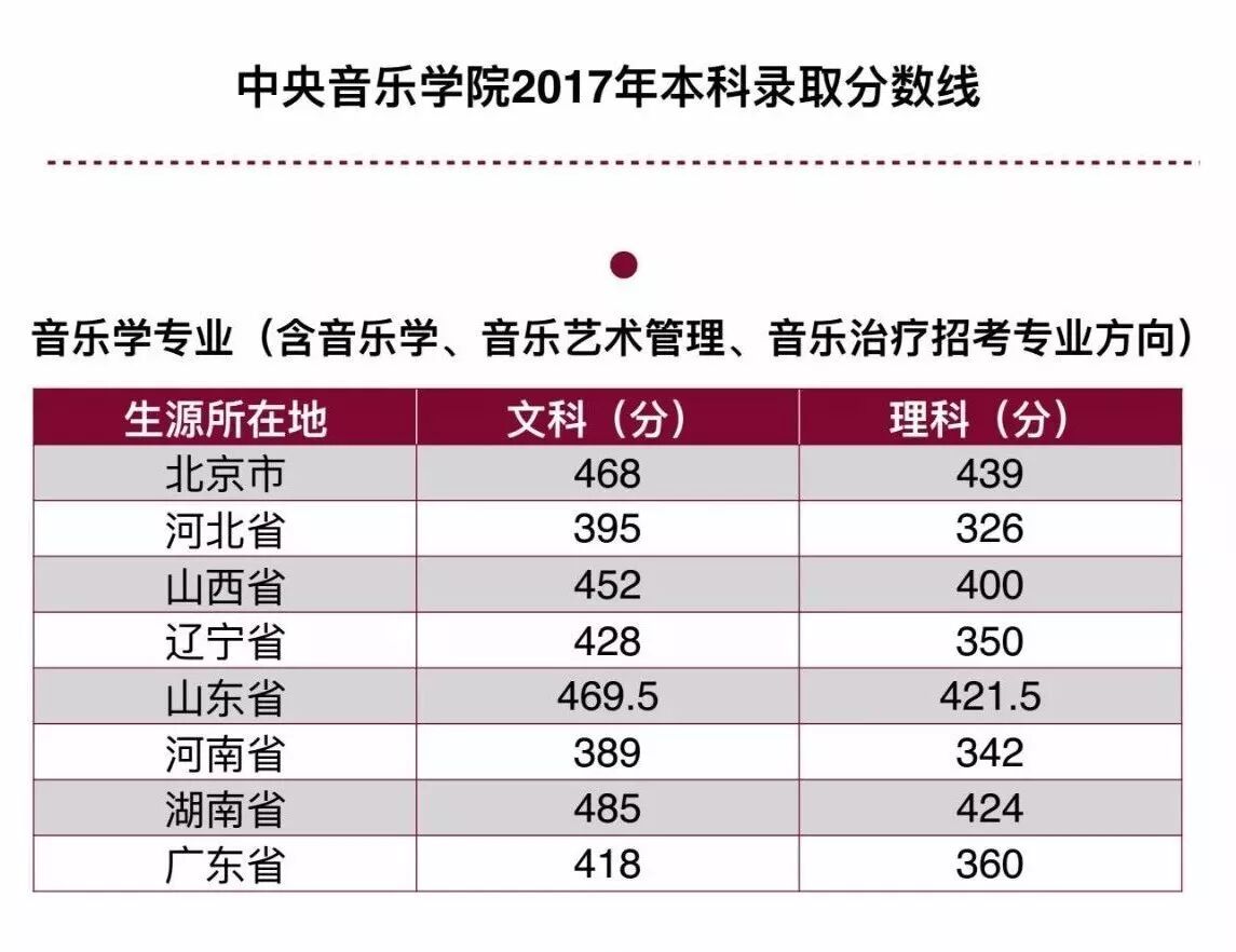 此文为2017年中国主流音乐学院“本科招生——文化课成绩录取分数线”,可作为2018年的参考。